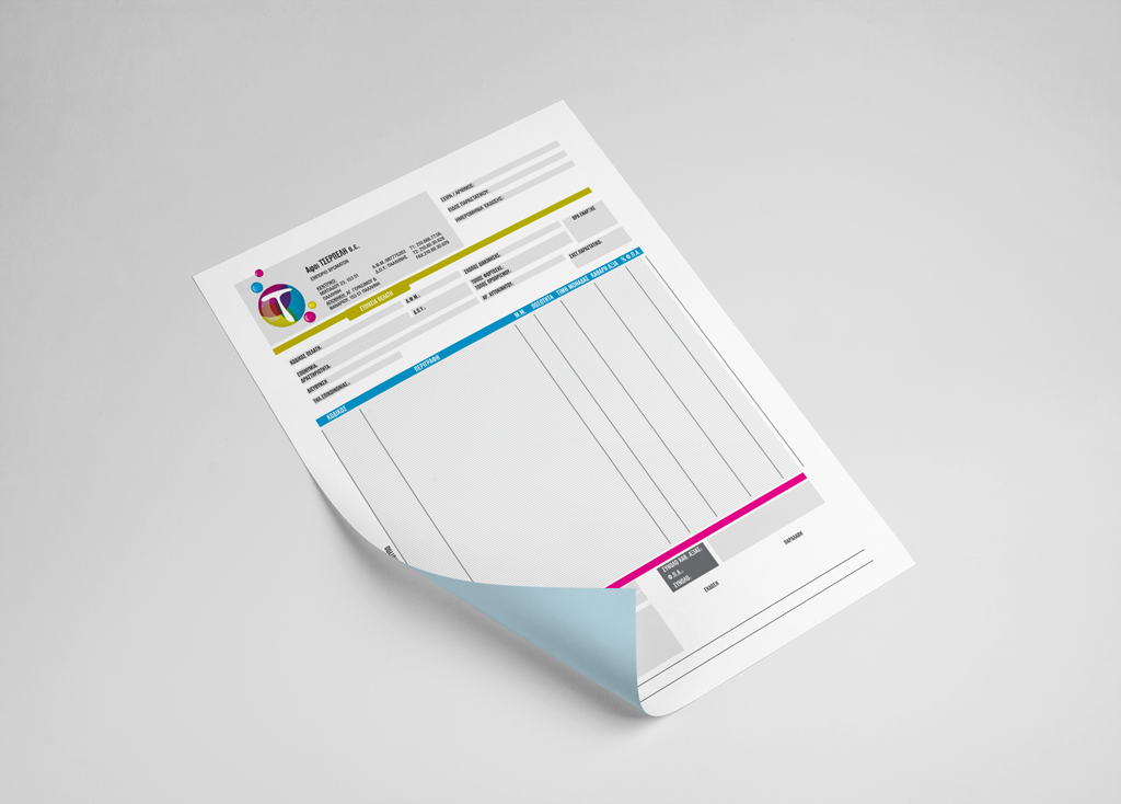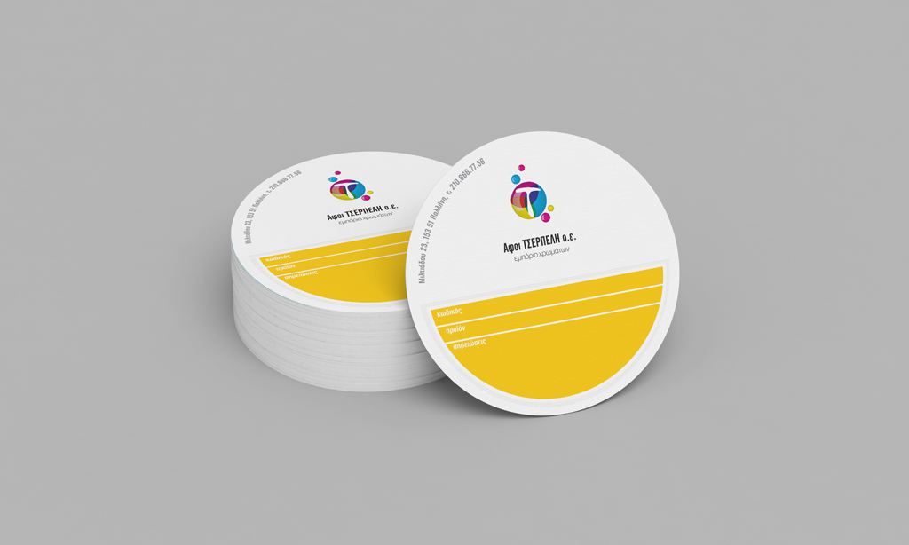 Έπειτα εφαρμογές του λογότυπου έγιναν σε επαγγελματικές κάρτες, τιμολόγια και Α5 σημειωματάρια, εξωτερική φωτεινή σήμαση επιχείρησης καθώς και σε αυτοκόλλητα αναγραφής κωδικών χρωμάτων.